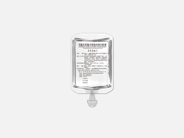 250ml:乳酸左氧氟沙星0.5g(以左氧氟沙星計)與氯化鈉2.25g | 玻璃輸液瓶、丁基橡膠塞;聚丙烯輸液瓶、塑料輸液容器用聚丙烯組合蓋(拉環式/易折式雙閥);三層共擠輸液用袋、輸液袋用聚丙烯接口、塑料輸液容器用聚丙烯組合蓋(拉環式/易折式雙閥) |